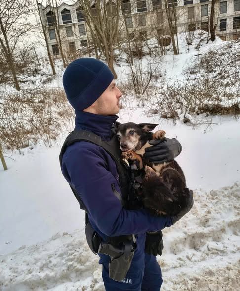 W sobotę funkcjonariusz z Władysławowa zauważył wystraszonego psa uwięzionego w starym betonowym kanale zasypanym śniegiem. Zwierzę było częściowo niewidome i nie miało szans wydostać się samodzielnie. Mundurowy bez wahania zszedł do kanału i ostrożnie wyciągnął psa na zewnątrz.