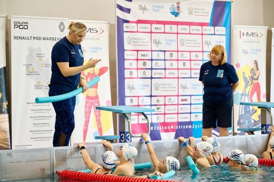 Zajęcia na pływalni i w hali sportowej dla dzieci oraz wykłady z dietetyki i psychologii dla rodziców – tak wyglądała sportowa niedziela w Błoniu pod Warszawą. W imponującym Centrum Sportu w tym mieście odbyła się kolejna tegoroczna odsłona akcji Otylia Swim Tour. – Bardzo się cieszę, że mimo niedzieli hala w Błoniu jest wypełniona młodymi adeptami pływania i ich rodzicami – mówi Otylia Jędrzejczak, która wymyśliła i wraz ze sztabem kilkunastu trenerów od wielu lat realizuje warsztaty pływackie.