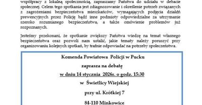 Policjanci zapraszają mieszkańców Minkowic na debatę 14 stycznia o bezpieczeństwie lokalnym. Spotkanie poświęcone będzie diagnozie zagrożeń,...